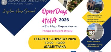 Το Χαροκόπειο Πανεπιστήμιο προσκαλεί μαθητές, μαθήτριες και εκπαιδευτικούς σε διαδικτυακή ενημερωτική εκδήλωση για τις σπουδές και τις δυνατότητες που προσφέρει το Πανεπιστήμιο.