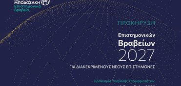 Το Ίδρυμα Μποδοσάκη προκηρύσσει Βραβεία για διακεκριμένους νέους Έλληνες επιστήμονες για το έτος 2027.
